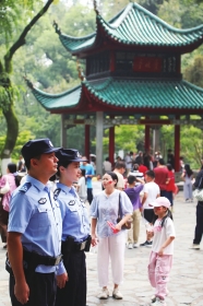 爱晚亭旁,警察正在执勤。图/长沙警事微信公众号