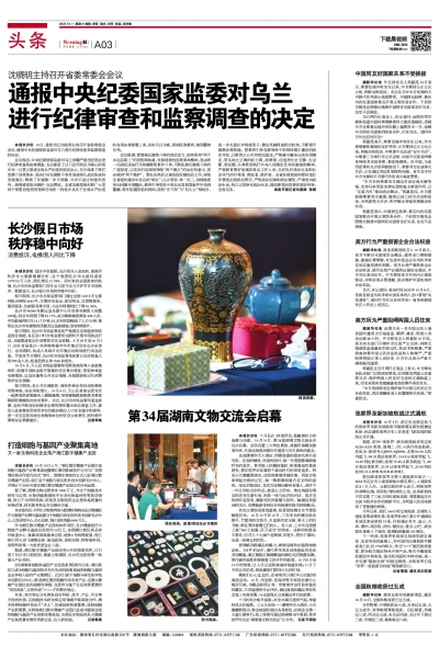 通报中央纪委国家监委对乌兰进行纪律审查和监察调查的决定