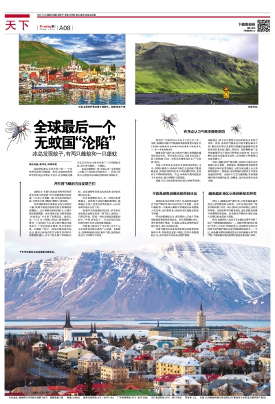综合央视、新华社、环球时报 冰岛曾经被认为是世界上唯一一个自然界没有蚊子的国家。然而,冰岛自然科学研究所的昆虫学家近日表示,在首都雷克雅未克以北约30公里处发现了三只环跗脉毛蚊,其中两只雌性,一只雄性。 冰岛和南极洲一样,长期以来一直是地球上少数几个没有蚊子的地方之一。研究人员表示,这是首次在冰岛自然环境中发现蚊子。 用引诱飞蛾的方法发现它们 法新社21日援引冰岛自然科学研究所昆虫学家马西亚斯·阿尔弗雷德松的话报道,三只蚊子为两雌一雄,学名是环跗脉毛蚊,在用来引诱飞蛾的“酒绳”上被发现。 首次捕获者哈尔塔森是在热红酒里加入糖,将绳子浸泡在酒里后挂在低矮树枝或篱笆上,以引诱喜欢甜味的蛾子,以便开展近距离观察。哈尔塔森在社交媒体群组“冰岛昆虫”中分享了发现经过。他回忆说:“10月16日傍晚,我在红酒诱捕带上看到一只奇怪的飞虫,我立刻怀疑这可能是蚊子,于是迅速将其捕获,然后发现那是一只雌蚊。”帖子一经发出便迅速引起关注,随后由冰岛自然历史研究所的阿尔弗雷德松确认,这3只昆虫属于环跗脉毛蚊。这是该物种及蚊虫在冰岛本土的首次被证实记录。 阿尔弗雷德松表示,这一发现具有重要意义。这种蚊子具有较强的耐寒性,能够通过在地下室或谷仓等处越冬,从而在冰岛环境中生存下来。 依照阿尔弗雷德松的说法,多年前在冰岛凯夫拉维克机场一架飞机上发现过一只黑足伊蚊。那是一种在北极地区栖息的蚊子,“可惜,样本丢了”。但此次是在冰岛自然环境中首次记录到蚊类踪迹。 环跗脉毛蚊原生于东半球,分布于从北非至西伯利亚北部的广大区域。专家指出,该物种能很好适应寒冷气候,甚至能在冰点以下的寒冬中存活。 有观点认为气候变暖是原因 研究所于当地时间10月20日正式公布了这一发现,强调这可能与气候变暖导致的温度升高有关(冰岛以往被视为全球极个别没有蚊子的地区之一,另一个是南极洲)。 随着全球气温升高,冰岛的气候正变得越来越适合昆虫生存。科学家近日证实,当地首次发现了蚊子的踪迹,而这一发现标志着冰岛失去了“无蚊国”地位。 冰岛大学的淡水生态学名誉教授吉斯利·马尔·吉斯拉森表示,冰岛并不缺乏合适的蚊子繁殖栖息地,冰岛机场的附近有许多池塘和沼泽,这是蚊子产卵的理想场所。不过,冰岛的气候可能是蚊子无法存活、建立种群的主要原因。 伦敦卫生与热带医学院的昆虫学家罗伯特·琼斯指出,蚊子幼虫需要未冻结的液态水来进行发育。然而,冰岛的气候条件对蚊子繁衍极为不利:漫长的冬季以及春秋时频繁的冻融循环会导致水体反复冻结、融化、再冻结。琼斯解释道:“这种冻融循环会干扰蚊子卵和幼虫的发育,在它们孵化成成虫前就将其杀死,从而使蚊子种群难以在冰岛建立。” 然而,随着全球气候变暖,冰岛的无蚊状态可能难以长久维持。琼斯指出,更温暖的春季和秋季可能使水体状态更加稳定,从而为蚊虫建立永久种群创造条件。据报道,冰岛变暖的速度是北半球其他地区的四倍。当地冰川正在加速消融,来自更温暖的南方海域的鱼类,如鲭鱼,也开始出现在冰岛水域。 可能是被集装箱或船带到冰岛 虽然冰岛首次发现了蚊子,但这些昆虫能否在当地严酷的冬季中存活仍是个未知数。这两只雌蚊和一只雄蚊大概率并非刚到达冰岛便被人们发现,但目前看来,冰岛尚未形成稳定的蚊子种群。 阿尔弗雷德松认为,新发现的三只蚊子可能是被集装箱或船带到冰岛。阿尔弗雷德松表示,来年春季需开展进一步监测,以确认该物种能否度过寒冬,真正在冰岛扎根。 尽管气候变化给冰岛带来更长的夏季和更暖的冬季,环境更适宜蚊子栖息,但阿尔弗雷德松认为,这并非蚊子在冰岛出现的原因。 越来越多地区记录到新蚊虫种类 实际上,随着全球气温升高,已经有越来越多地区记录到新的蚊虫种类。今年在英国发现了埃及伊蚊的卵,而另一种入侵种白纹伊蚊则已出现在肯特郡。这些蚊种可传播登革热、基孔肯雅热和寨卡病毒等热带疾病。冰岛寒冷严酷的冬季使当地人长期以来免受蚊子侵扰。 然而,该国研究人员近日首次确认在野外发现了蚊子,气候变暖或是原因之一。美国非营利性统计组织“世界人口评论”的调查显示,冰岛曾是全球仅有的两个因气候严寒而无法孕育蚊群的地区之一。不过,冰岛确实拥有能维持昆虫生命的植被与季节性气温,气候变暖可能为蚊群向该地迁徙创造了条件。